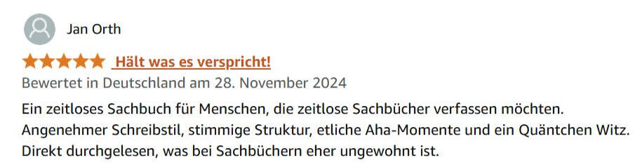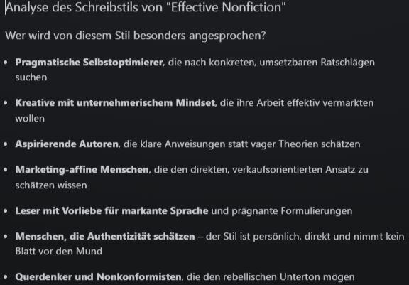 Erreichen keine Langzeit-Wirkung beim Leser.Damit gehören sie zu "Passive Nonfiction".Weil die meisten Schreibratgeber-Autoren ängstliche Konformisten sind,