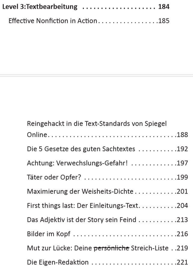 das Inhaltsverzeichnis fertig, um im nächsten Level nur noch die Lücken zu füllen.